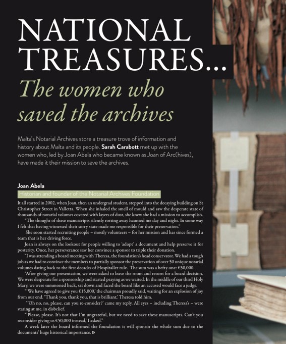 In 2015, the Alfred Mizzi Foundation and the Notarial Archives Foundation (NAF), then the Notarial Archives Resource Council (NARC), embarked on a seven-year journey to conserve Notary Bartholomeo Selvagij de Via’s lifework of 53 notarial manuscripts. These volumes date from 1531 to 1551 and are found at the Notarial Archives at St Christopher Street, Valletta, … Continued