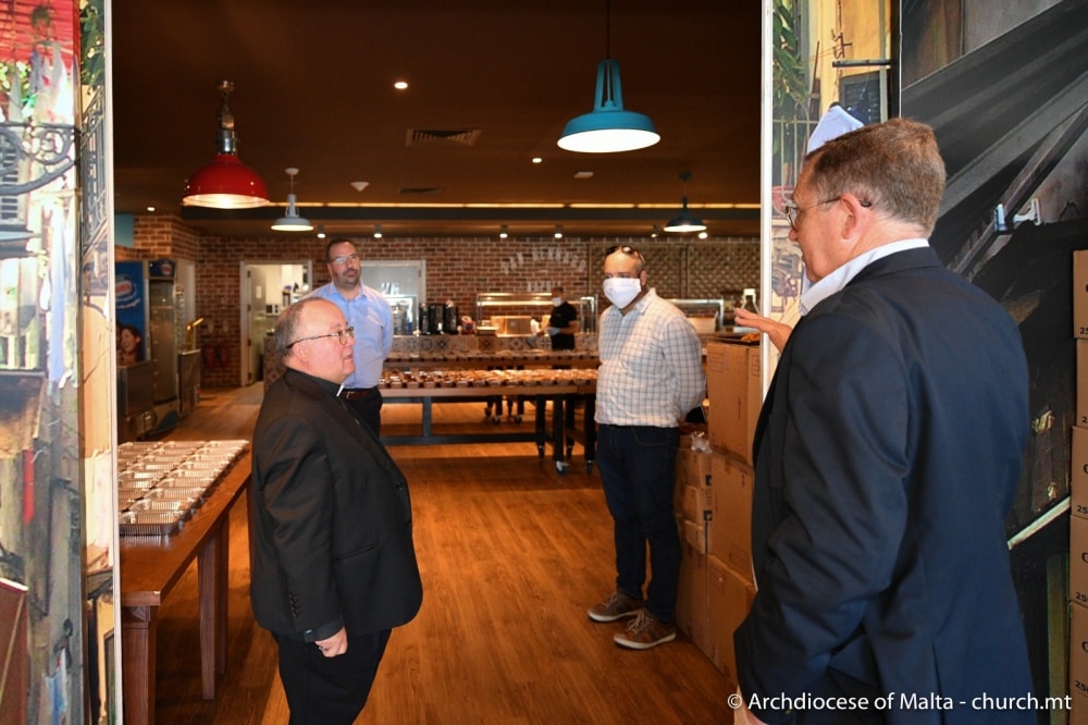 Waqt iż-żjara l-Arċisqof iddawwar mal-istabbiliment minn Julian Sammut, iċ-Chairperson ta’ The Alfred Mizzi Foundation, u kien akkumpanjat minn Anthony Gatt, Direttur ta’ Caritas Malta; u Albert Debono, il-Kap tad-Djakonija Unit u l-Kordinatur ta’ dan il-proġett.