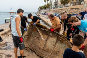 Another successful Xemxija clean-up with over 1 tonne of waste collected, including four sunken tenders, 3 boat batteries and over 200 glass bottles